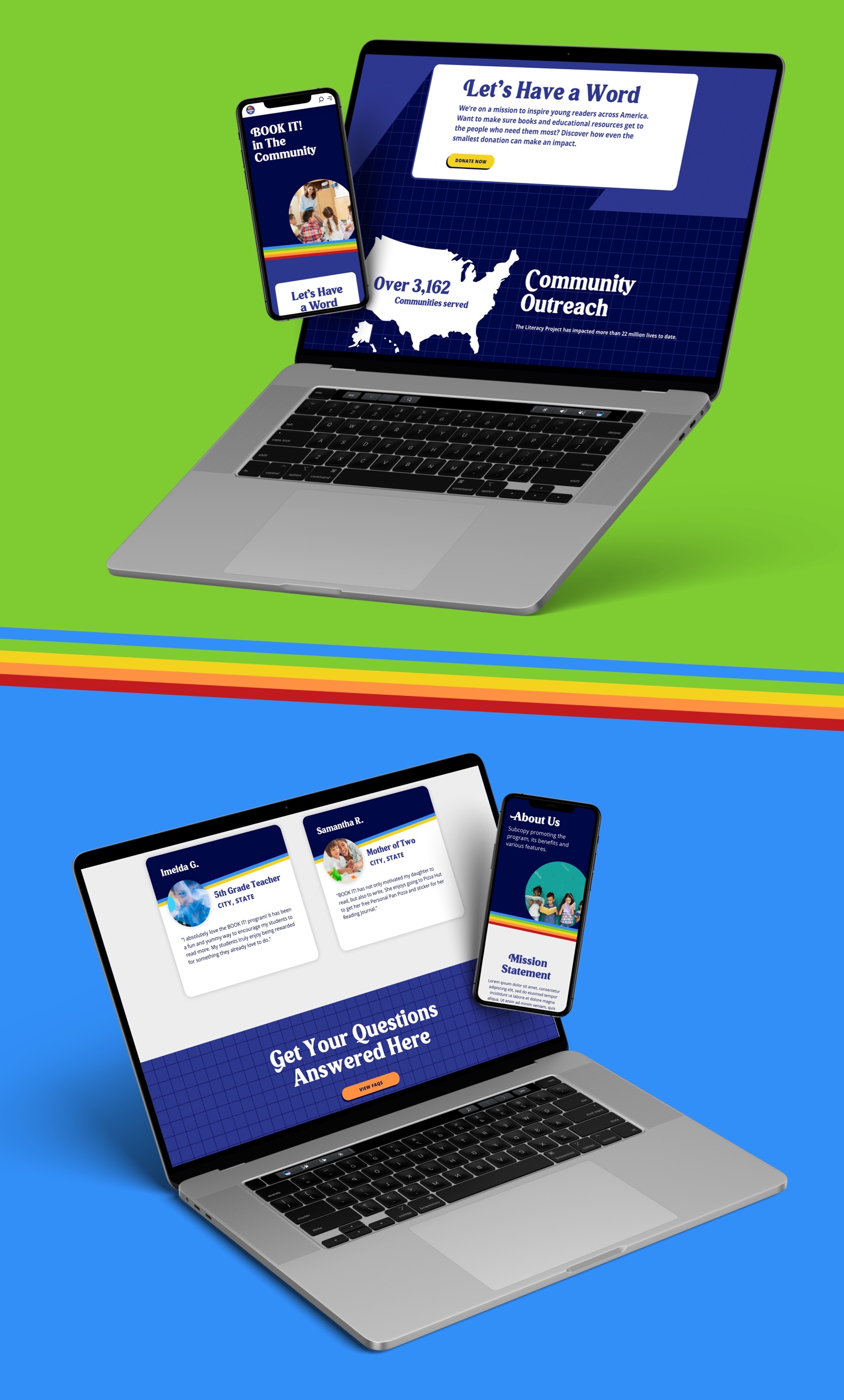 I worked with my team to re-design the Pizza Hut BOOK IT! website. The client was seeking an experience that would appeal to both children and adults. With a retro aesthetic in mind, the pages were designed to include colors and patterns that looked professional and fun.